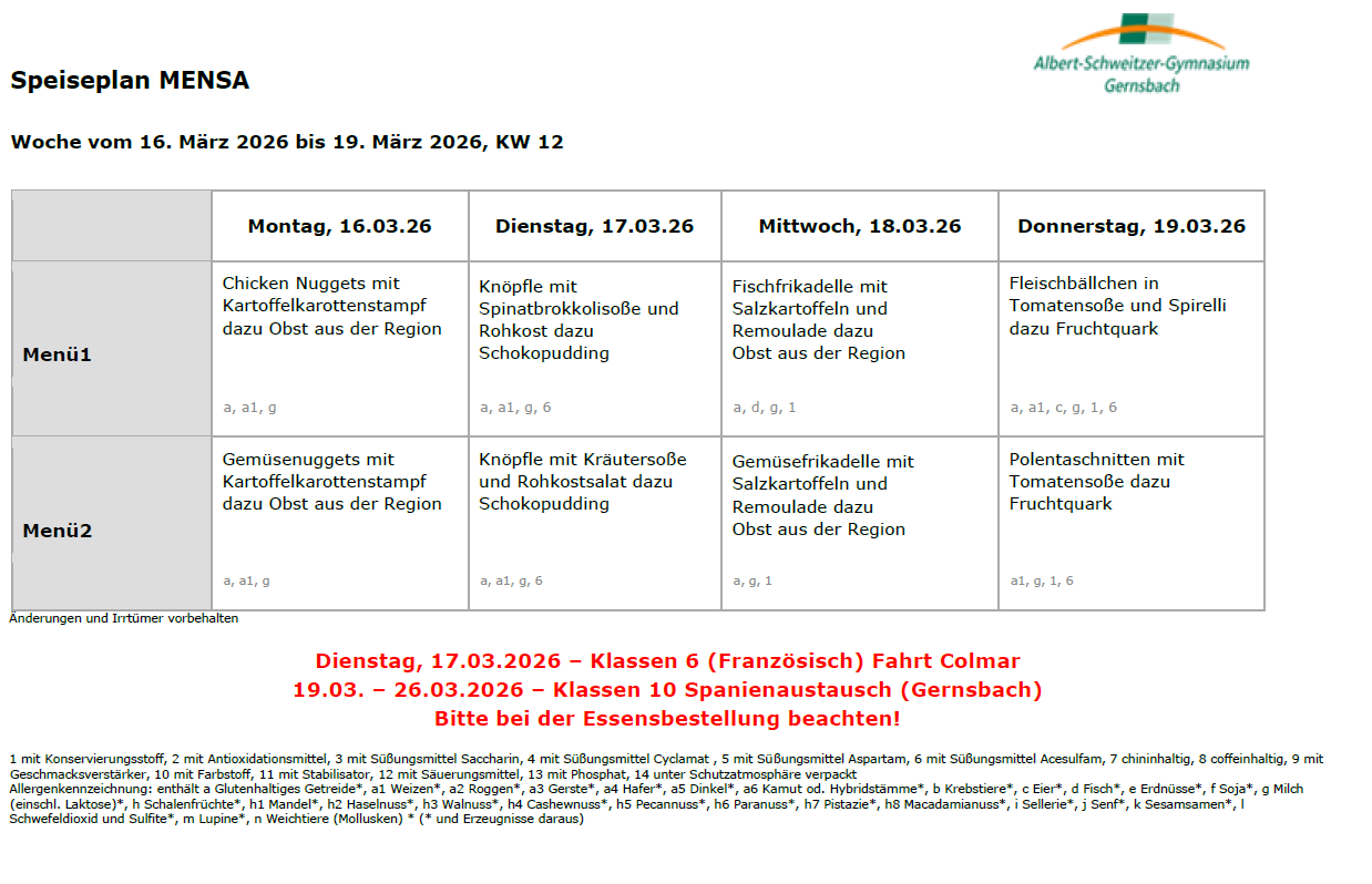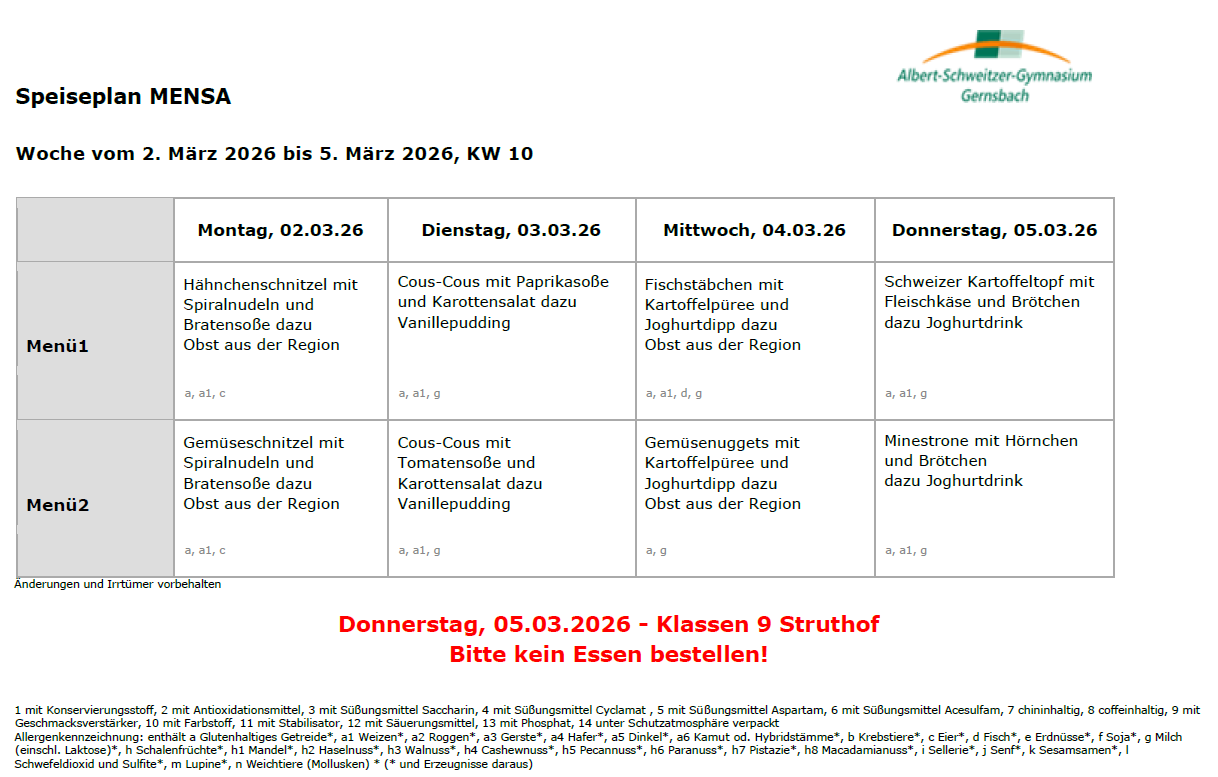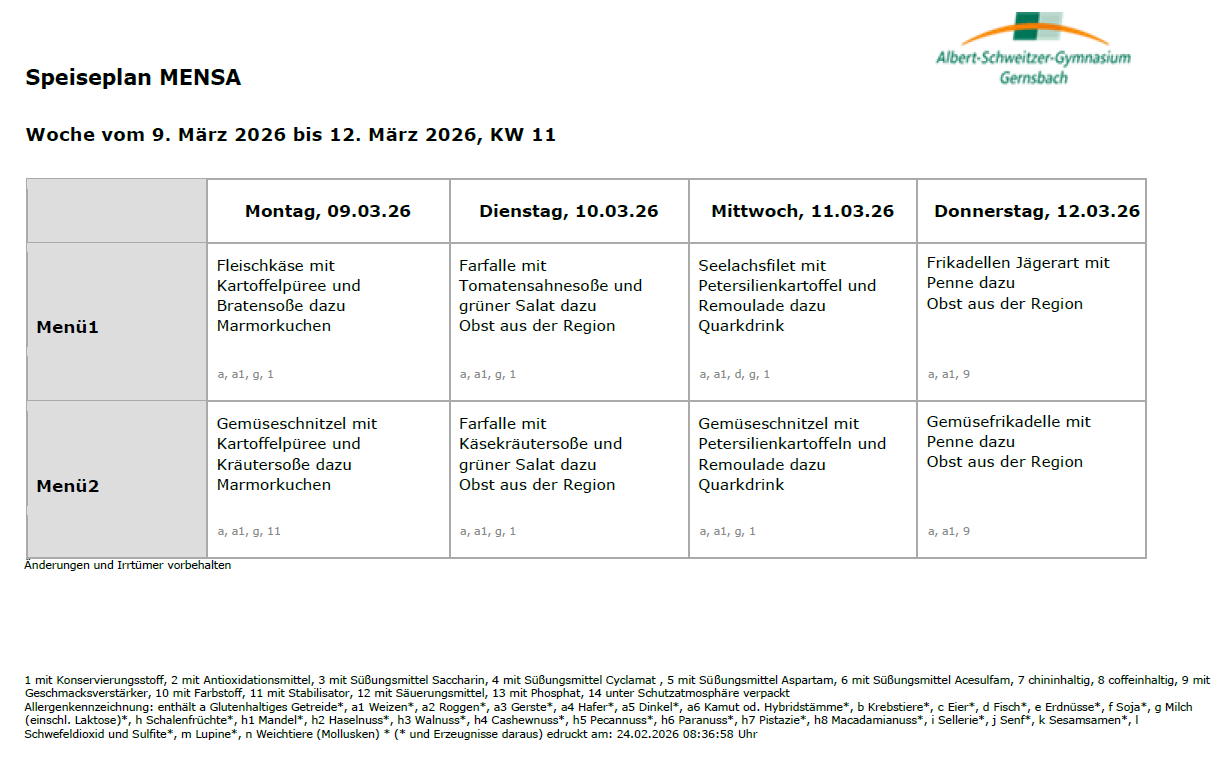 Aktuelle Speisepläne -